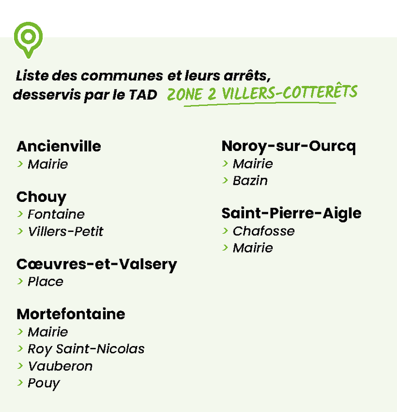 En dehors des heures de passage des lignes régulières, les trajets intramuros à Villers-Cotterêts sont possibles.