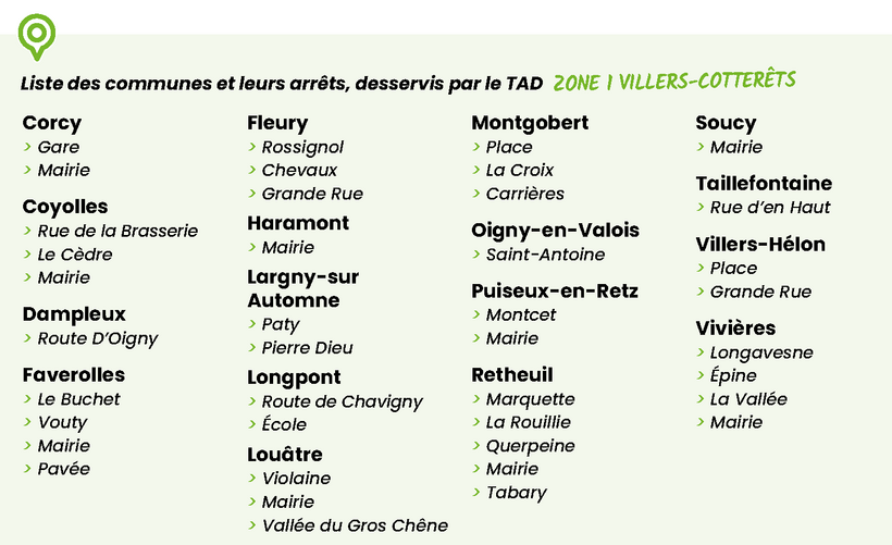 En dehors des heures de passage des lignes régulières, les trajets intramuros à Villers-Cotterêts sont possibles.